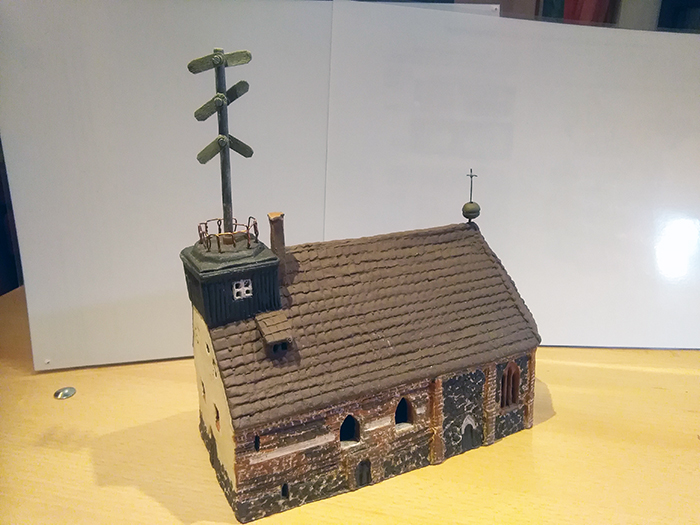 Model: Ein wunderschönes Tonmodell der St. Annenkirche mit Telegraph wurde von Almut Jung aus Bevern handgefertigt. Das Modell wurde am 15. Januar 2024 an Dr, Hans Wegener und Klaus Hanssen von der Gemeinde St, Annen übergeben. Zukünftig wird es in der St. Annenkirche ausgestellt werden.