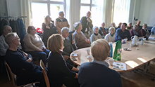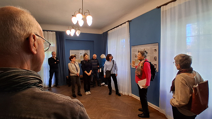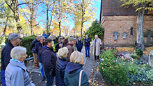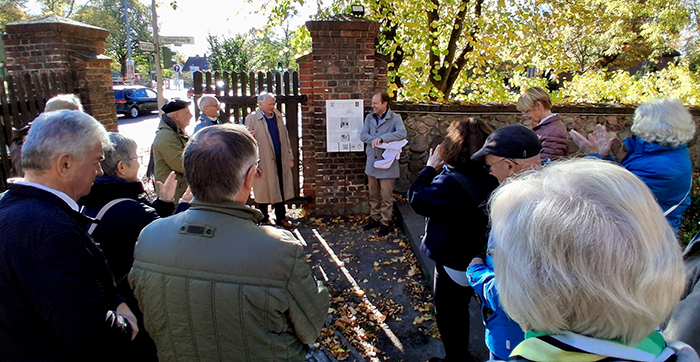 Im benachbarten Martin-Niemöller Haus wurde während des Dritten Reiches der Kampf der Bekennenden Kirche vs. die Deutschen Christen beispielhaft ausgetragen: Hier sogar erfolgreich! Bei der Exkursion der IG regte dies an zum Vergleich mit der heutigen unsicheren politischen Perspektive (Galerie letztes Bild).