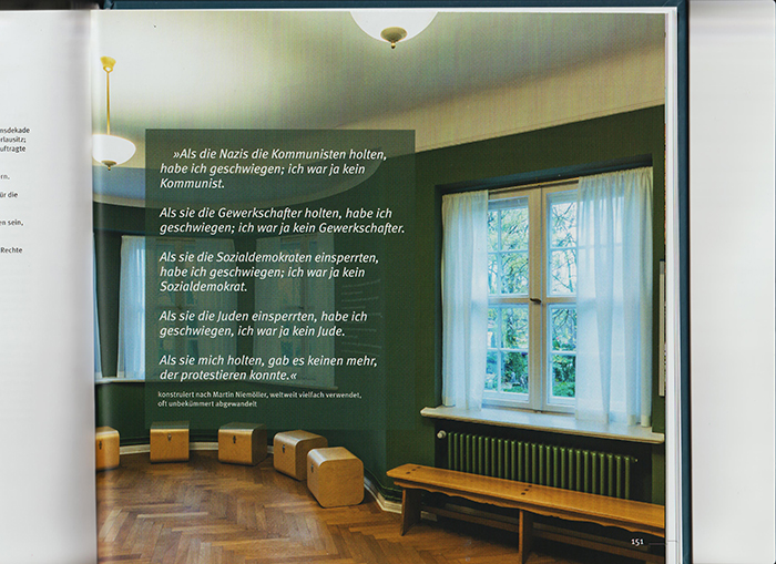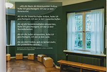 Im früheren Pfarrhaus der evangelischen Kirchengemeinde Dahlem ist das Arbeitszimmer von Pfarrer Martin Niemöller zu einem Erinnerungsort gestaltet worden (Informationsblatt A4).