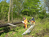 Ins Gespräch kam das Projekt in der Samtgemeinde Stadtoldendorf bereits im Jahr 2007. Die Handwerksarbeiten vor Ort leisteten 2013 vier Mitarbeiter des Bauhofs und ein Jungunternehmer bei Sonnenschein und weißenblauem Himmel mit einem (gelegentlichen) Blick auf die üppig blühenden Schlüsselblumen auf den Holzbergwiesen und herrlich leuchtende Rapsfelder (M. Stolz 2013). Großen Anteil am Gelingen hatte Dirk Wollenweber, zunächst stellvertretender und jetzt Bürgermeister von Linnenkamp. Er war beim Aufbau der Attrappe dabei genauso wie der Bürgermeister von Wangelnstedt, Manfred Adam.