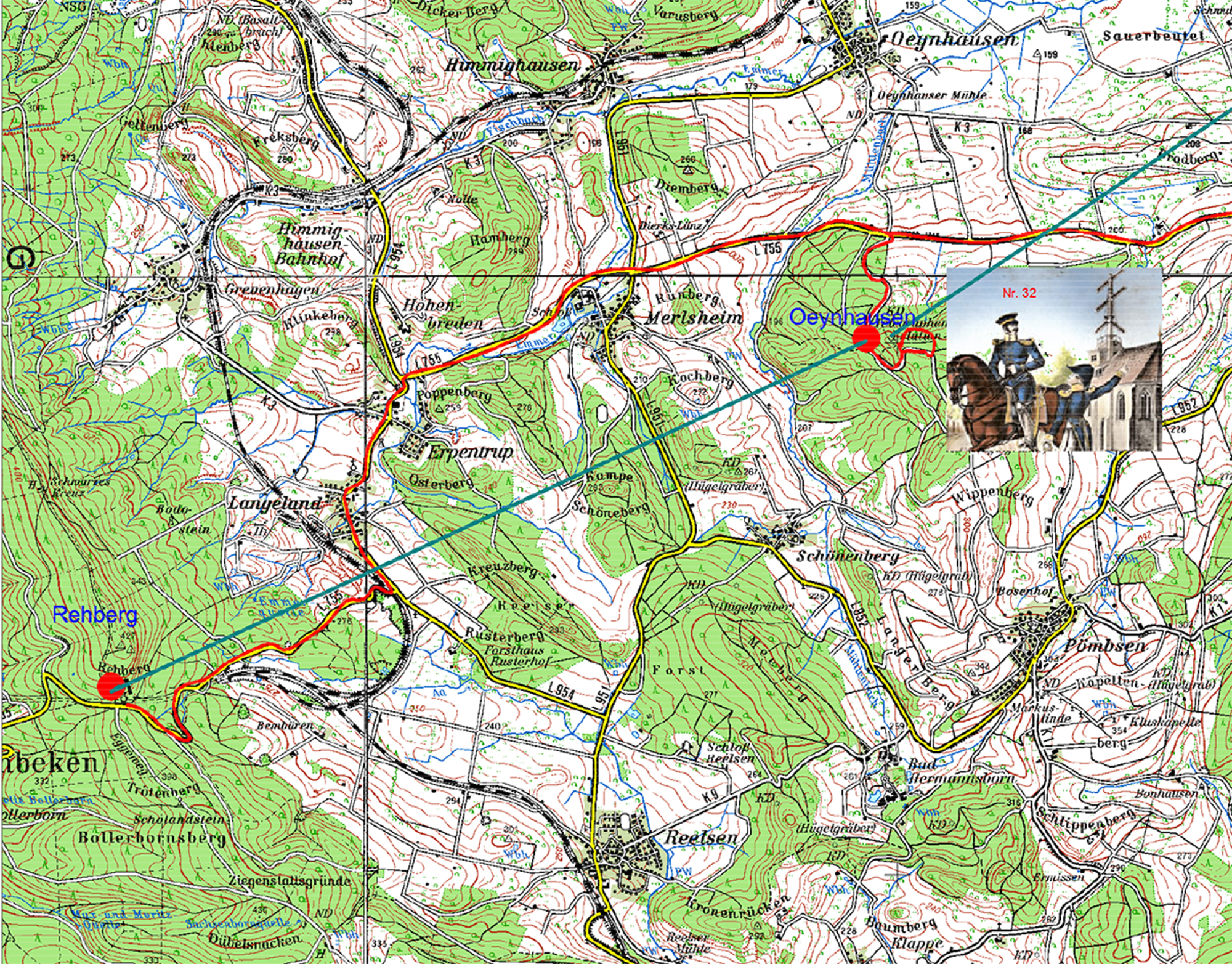 - Von der Station 32 zur Station 33: Oeynhausen – Altenbeken (Entwurf für den Telegraphenradweg: K. Heinemann 01 2010) (© und Dank für die frdl. Unterstützung dem dem Landesvermessungsamt Nordrhein-Westfalen, http://www.geobasis.nrw.de (Hohe Auflösung)