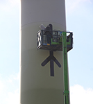 Die Station 35 stand 500 m südlich des Hohelietweges hart an der Windkraftanlage Nr. 701145 von Landwirt Markus Mönikes. Am Schaft dieses ´Windrades´ wurde das Bild einer Signalanlage ehrenamtlich angebracht unter Zuhilfenahme eines ´Merlo´, den die Firma ´Elektro Gottwick´ am 14. Oktober 2017 kostenlos bereitgestellt hatte.