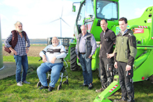 - Pressetermin am Schaukasten am 26.10.2017: von links: Fabian Minge, Enkel von F. Mönikes; Franz Mönikes, Eigentümer der Windkraftanlage; Ludwig Heggen, ehem. Ortsheimatpfleger von Dörenhagen; Romanus Dissen, Inhaber von Elektro Gottwick in Lichtenau; Konrad Lüke, Gemeindeheimatpfleger von Borchen; Andrea Simon, Vorsitzende des Heimat- und Kulturkreises Dörenhagen; Ulrich Klauke, Ortsheimatpfleger von Dörenhagen; Anke Arlt, Volksbank Paderborn-Detmold-Höxter eG, Filiale Dörenhagen. Es fehlen: Werner Heinemann, Inhaber von Heinemann Werbetechnik Paderborn; Bernhard Lötfering, Ortsheimatpfleger von Haaren; Heinz Rebbe, Ortvorsteher von Dörenhagen (Foto: NN, Beschaffung: K. Lüke).