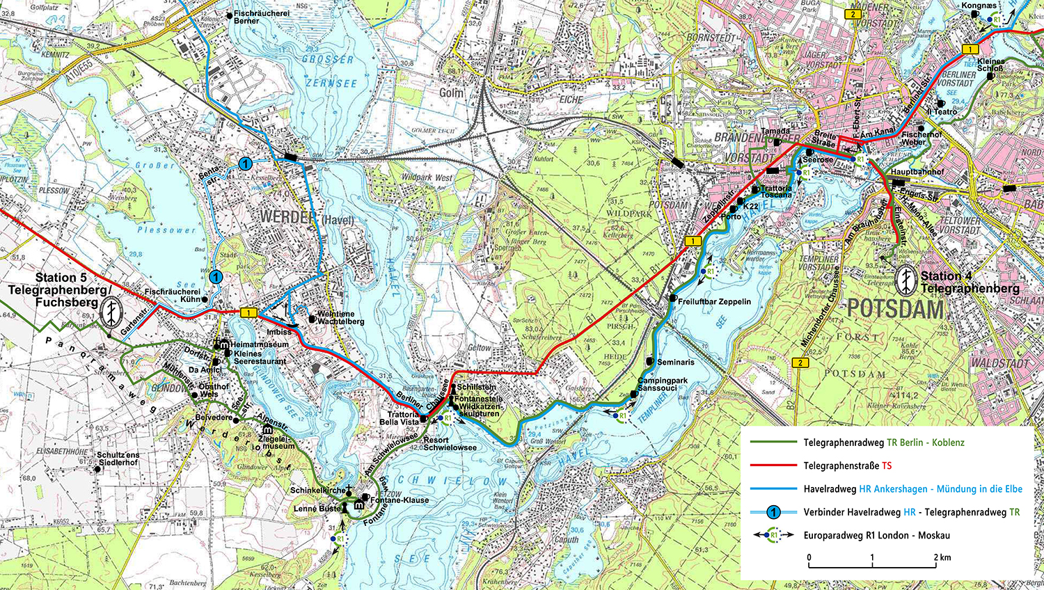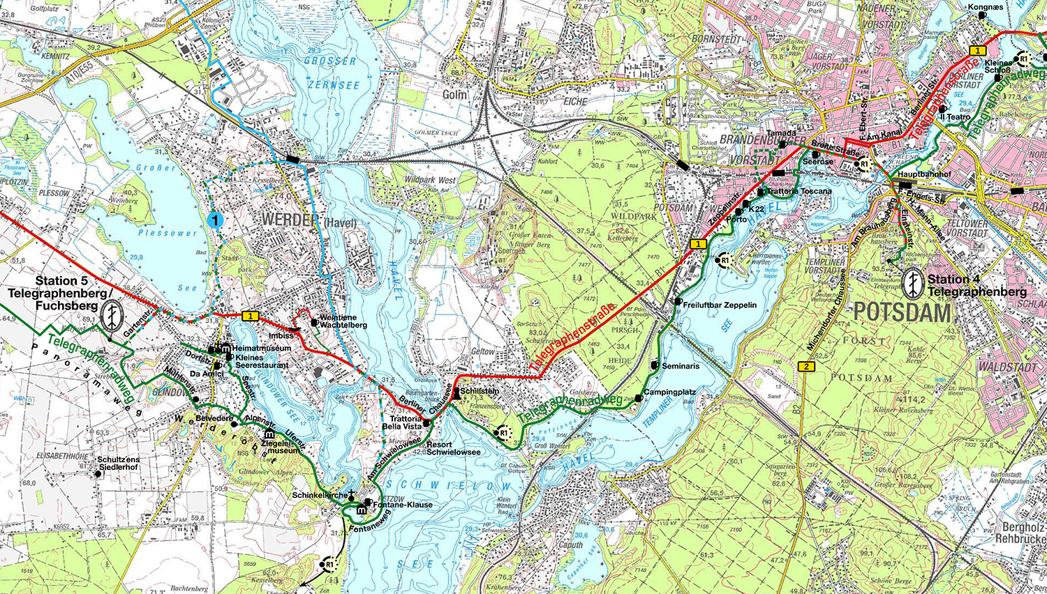 Route: Panoramaweg Werderobst (= Telegraphenradweg Berlin – Koblenz) bis zur Station 5: