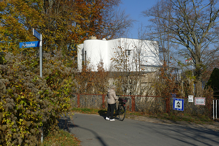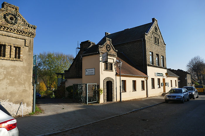 - Zur Station 5: In Glindow von der B1 abbiegen nach links in die Glindower Gartenstraße direkt hinter dem ehemaligen Gasthaus „Zum Grünen Baum“, zuletzt Apfelhotel Gasthaus Granny Smith (Bild). 500 m geradeaus bis zum Schild „gesperrt für Fahrzeuge aller Art“. Das Fahrzeug abstellen. Halbrechts grüßt bereits der Nachbau der Signalanlage der Station 5 Telegraphenberg Glindow.