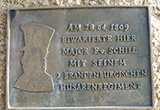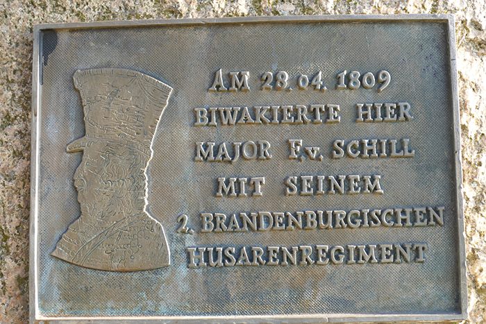 - Schill-Gedenktafel an der B1 in Geltow beim Parkplatz Baumgartenbrücke