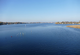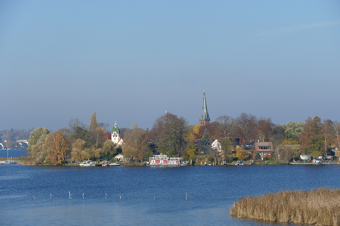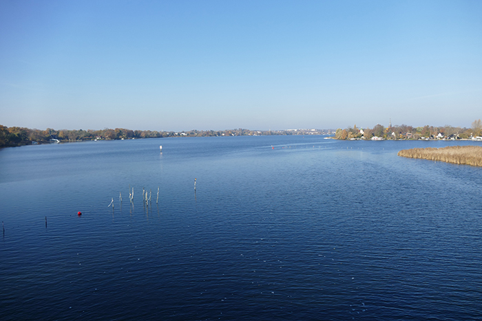 - Blick von der Baumgarten-brücke via den Zernsee auf Werder und Geltow