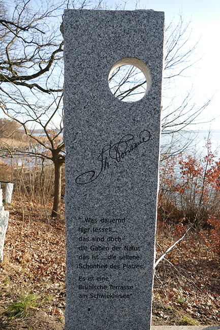 - Zwischenstopp 1 Schillstein: Ortsausgang Geltow an der B1 vor der Baumgartenbrücke nach l. links abbiegen auf den Parkplatz (Erläuterung zum Gedenkstein in 7.7.7)