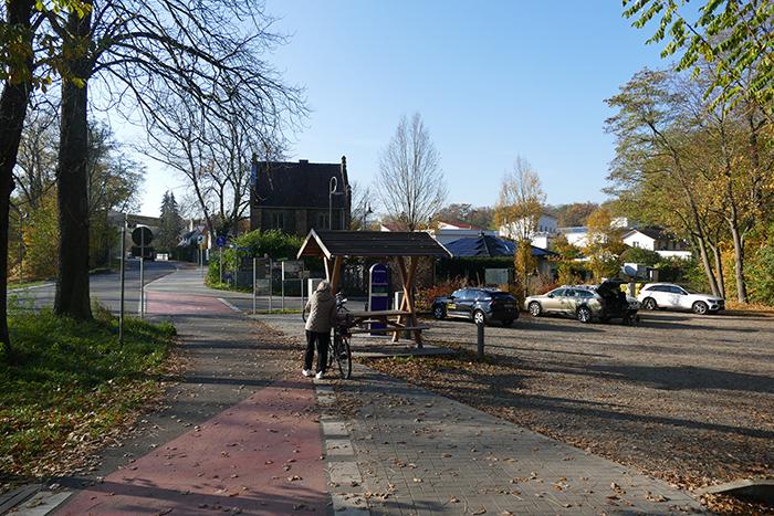 - Achtung: Hinter dem Parkplatz geht es nach rechts