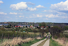 - Zwischenstopp 2 Wachtelberg: in Werder von der B1 nach r. abbiegen an einer ehemaligen Tankstelle (heute Imbiss) in die Moosfennstraße – r. in „Am Wachtelberg“ – l. in Am Wachtelberg – r. auf Am Wachtelberg – r. in Am Weinberg – l. Am Weinberg, r. in Wachtelwinkel und steil aufwärts bis zum Parkplatz an der Weintiene im Wachtelwinkel 30. Die Weintiene ist von Ostern bis Mitte Oktober geöffnet.